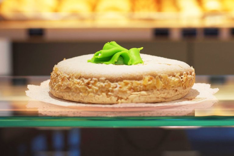 Die Baarer Räbentorte ist eine geschichtete Torte: Auf den Boden aus einer Mandelmakrone folgt Buttercrème…